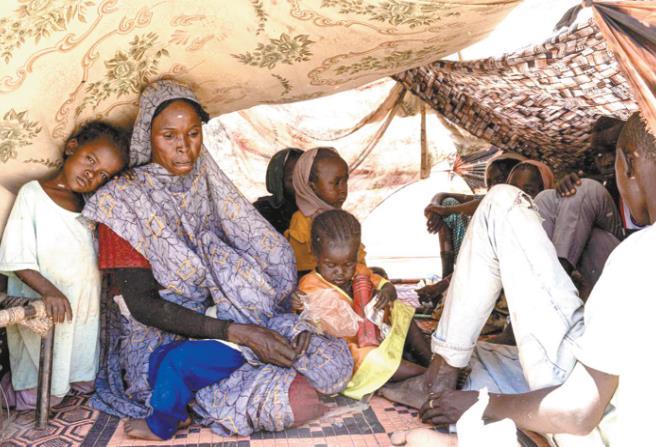 圖為在蘇丹北達(dá)爾富爾州塔維拉鎮(zhèn),流離失所者在一處用樹枝和布料搭建的簡易帳篷下休息。 新華社發(fā)