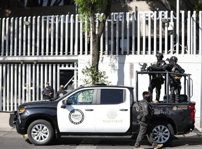 2月23日,在墨西哥首都墨西哥城,安全人員在街頭執(zhí)勤。新華社發(fā)(弗朗西斯科·卡涅多攝)