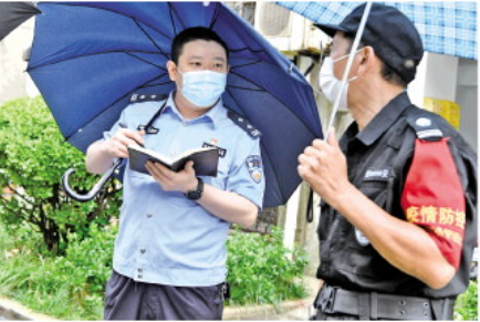 苗斌返回工作崗位后,全身心投入疫情防控中。他帶頭下沉社區(qū),與社區(qū)民警、志愿者一起維護核酸檢測現(xiàn)場秩序、宣傳反詐騙知識。每當家人打電話詢問其身體狀況時,他都樂呵呵地說:“工作起來不感覺身體不適,反倒是坐下來休息會覺得不舒服??鞓饭ぷ骶褪亲詈茂煼ā!?/p>