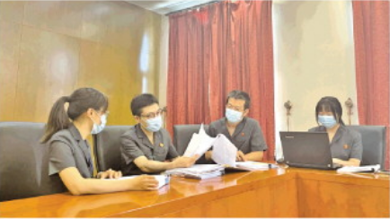 圖為陶鈞(左二)正在參與合議案件。 北京市高級(jí)人民法院供圖