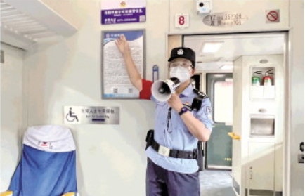 入警第一天,李曉芳就被編入乘警組到列車上值乘?!拔覀冎党说氖瞧胀熊?,站點多、時間長、旅客多,剛開始確實不適應(yīng),壓力大,生怕列車上出現(xiàn)什么事。”李曉芳回憶起第一次值乘的經(jīng)歷。