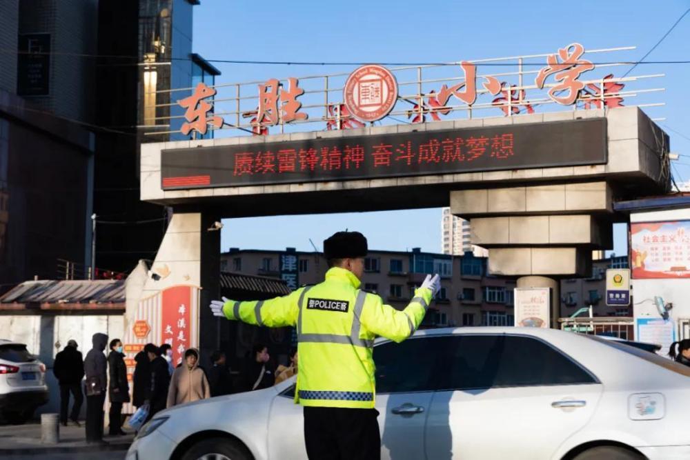 圖為本溪交警正在校園門口疏導交通。