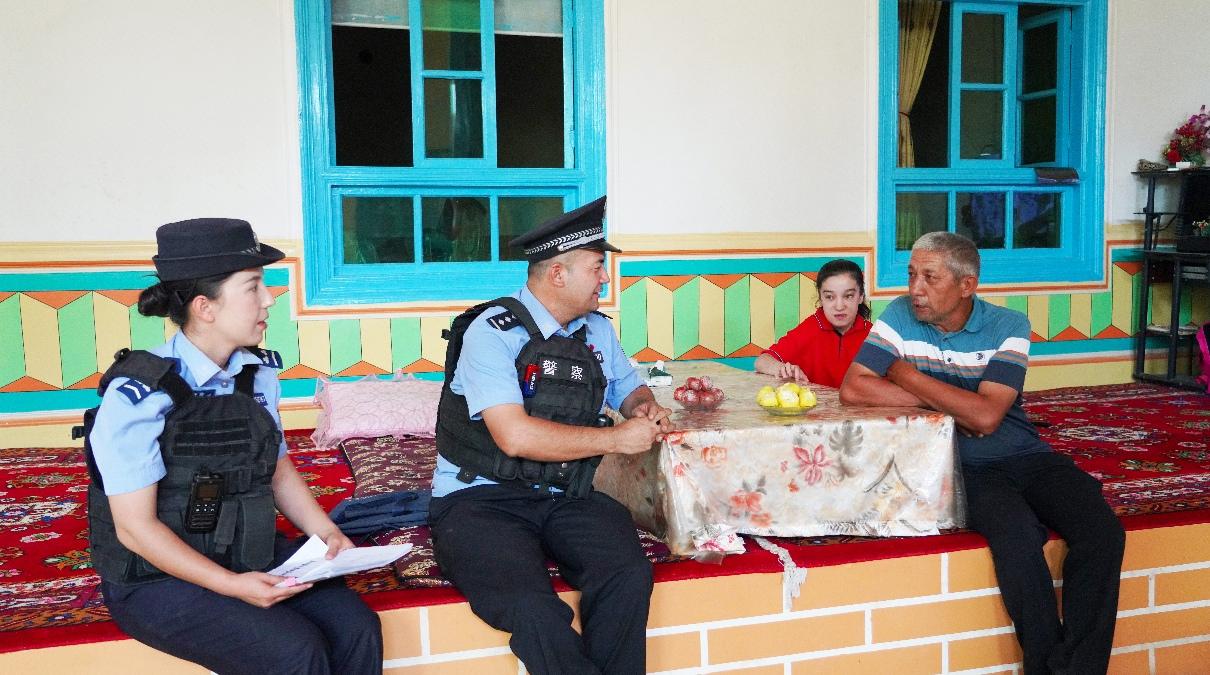 “買警官,我家今年雇了3名外地工人摘葡萄,他們說要辦居住證才能長期住,可不知道咋申請?”在蘭干警務(wù)室門口的“微型課堂”上,62歲的吐尼沙汗·艾力舉著手提問。