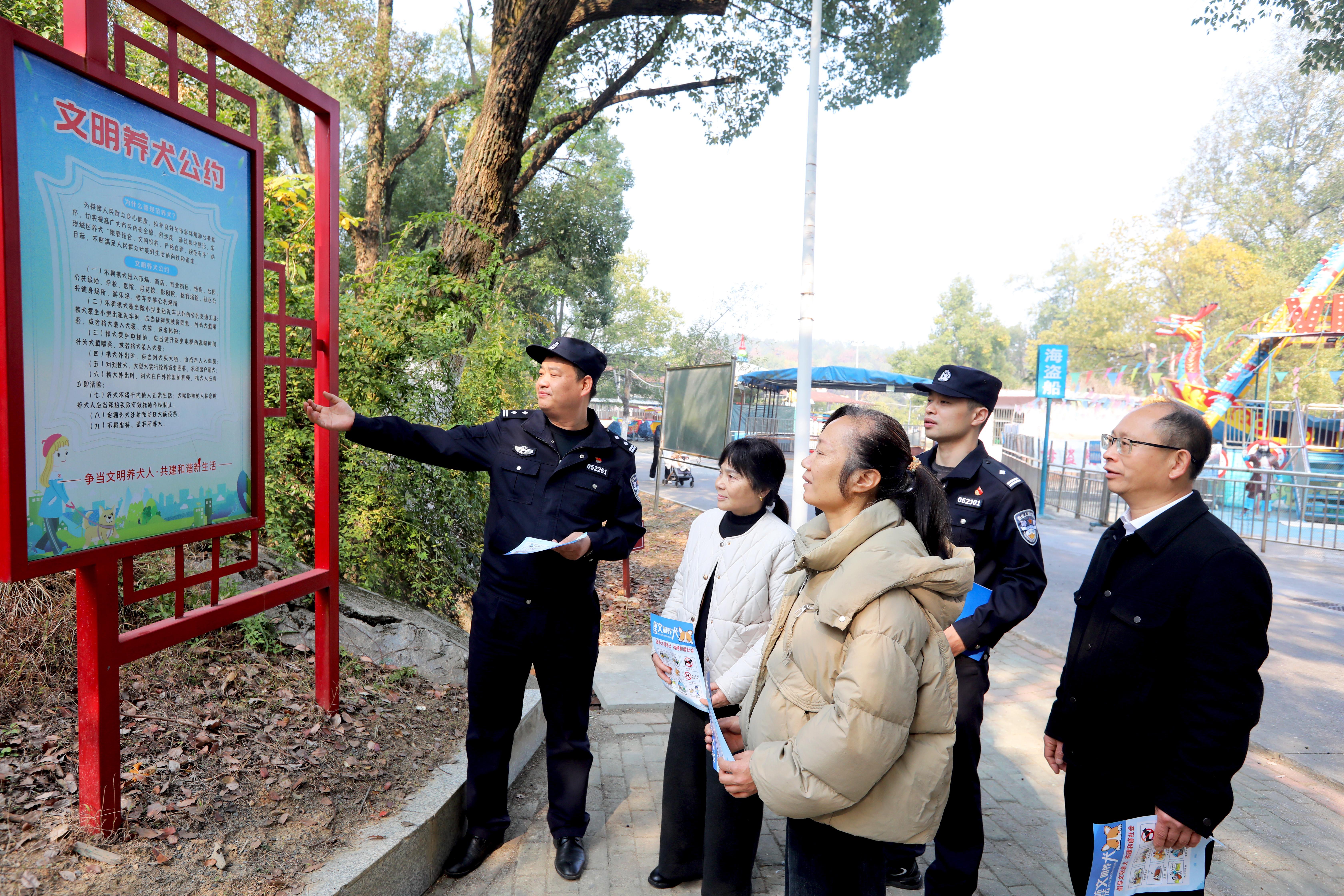 圖為12月11日,民輔警在鈐西街道政法巷社區(qū)向群眾普及文明養(yǎng)犬知識(shí)。
