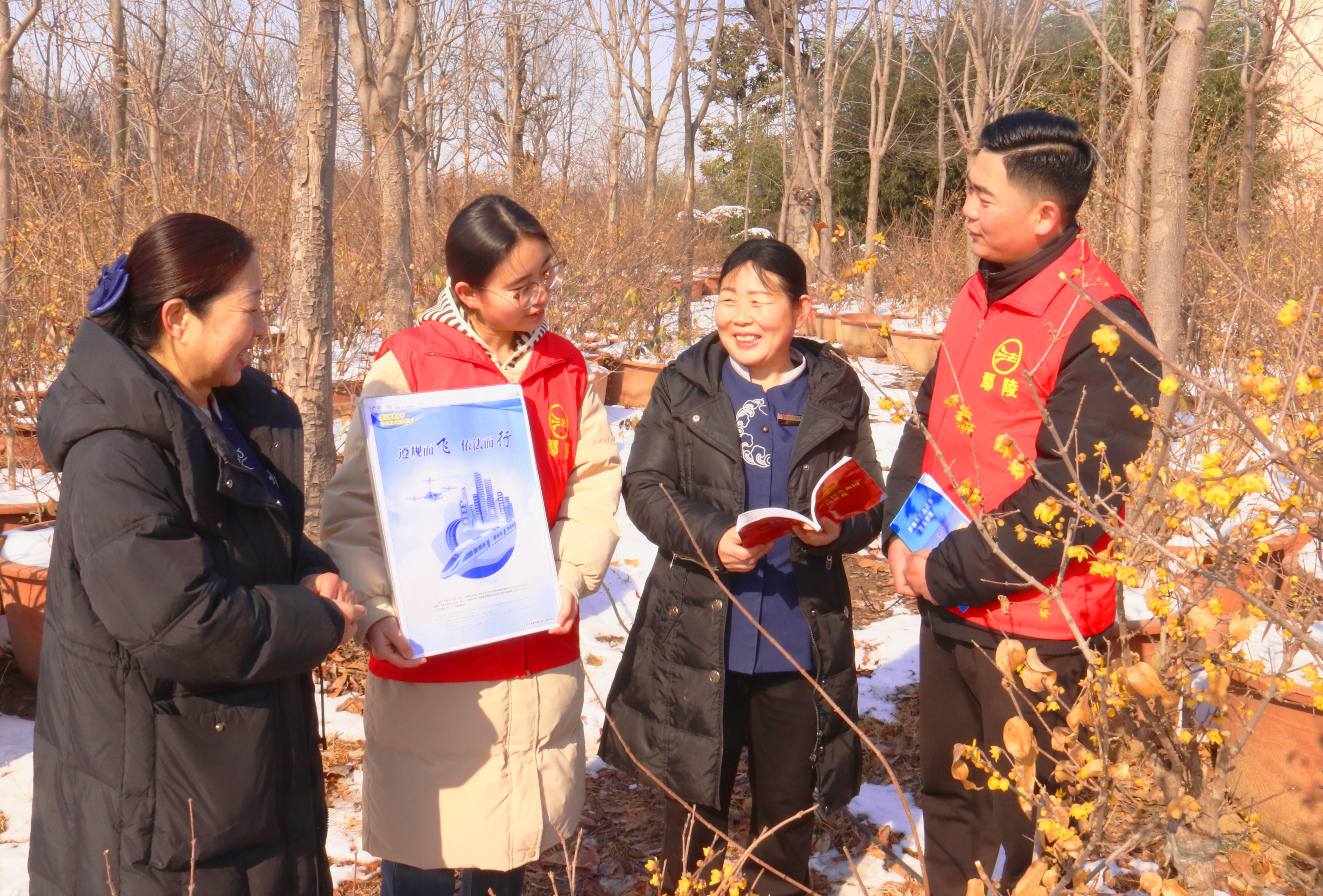 隆冬時(shí)節(jié),被譽(yù)為“中國蠟梅文化之鄉(xiāng)”的河南省鄢陵縣蠟梅花競(jìng)相綻放,吸引著眾多游客。1月22日,鄢陵縣司法局組織普法志愿者深入轄區(qū)臘梅園向游客、商戶開展“守護(hù)平安年”反詐宣傳活動(dòng)。