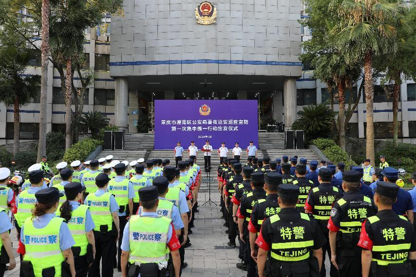 厲兵秣馬,整裝待發(fā),全力以赴,守護(hù)當(dāng)“夏”。7月6日晚,潼南區(qū)公安局指揮中心大樓前警燈閃爍、警徽熠熠,參勤民警和市場(chǎng)監(jiān)督管理局、城市管理局、消防救援局、文化執(zhí)法等部門(mén)工作人員整齊列隊(duì)、蓄勢(shì)待發(fā)。