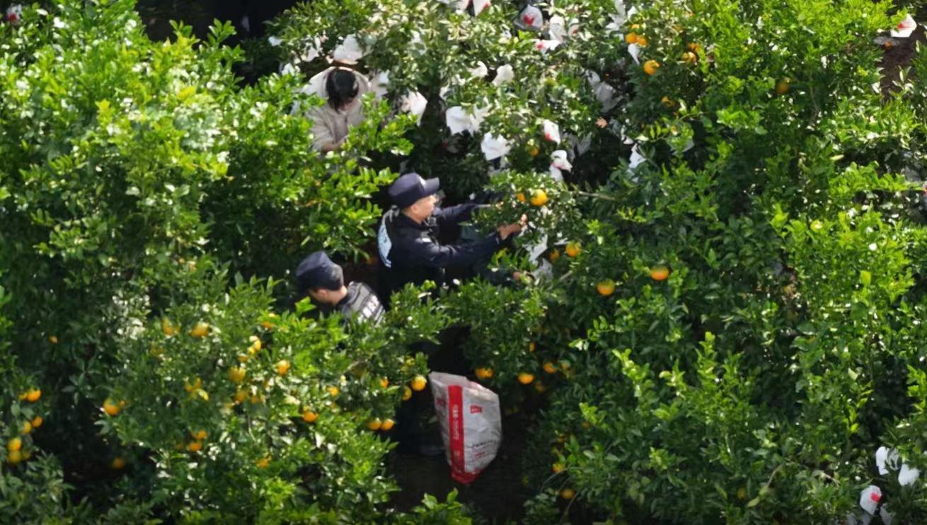 四川省眉山市仁壽縣新店鎮(zhèn)的丘陵間碩果滿枝——作為柑橘“清見”的產(chǎn)業(yè)發(fā)源地,3.7萬余畝晚熟柑橘進(jìn)入采摘季,清見、不知火、春見等優(yōu)質(zhì)品種掛滿枝頭,果農(nóng)穿梭林間采摘分揀,歡聲笑語中洋溢著豐收的甜蜜。田間果園,仁壽縣公安局新店派出所化身“清見衛(wèi)士”,讓“錢袋子”與“平安符”雙雙落地,走出了一條產(chǎn)業(yè)興、鄉(xiāng)村安的振興之路。