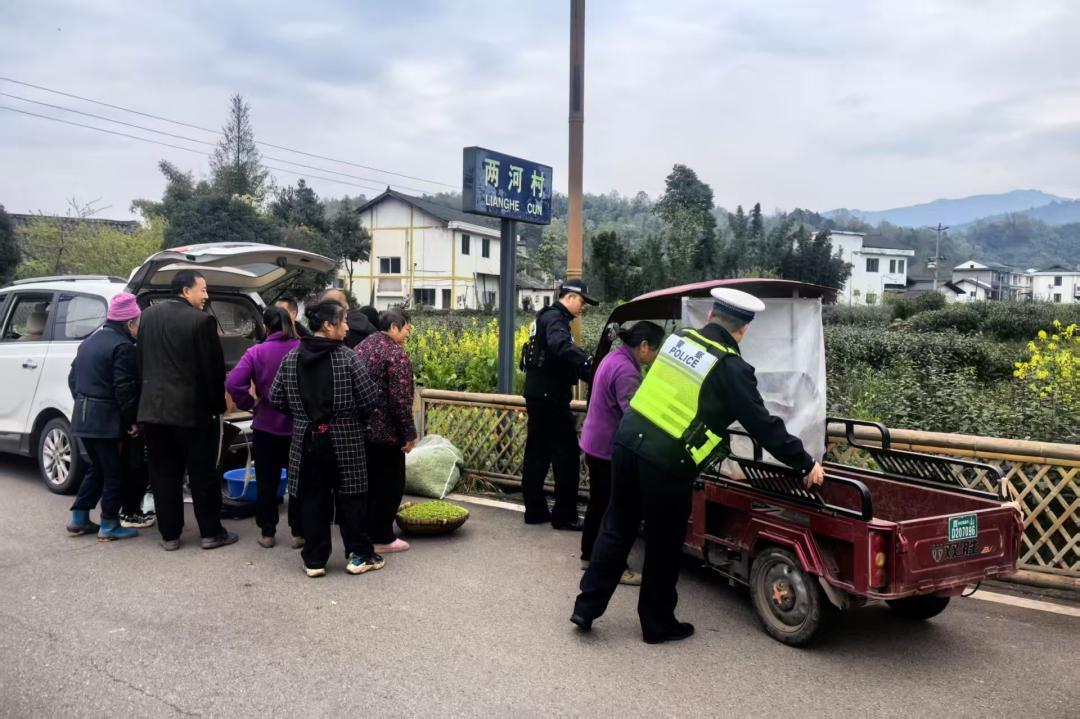 “大哥,三輪車停在這彎道上,后車要是視線不好剎不住,后果你想過沒有?”在柳江鎮(zhèn)兩河村一處臨時(shí)茶葉交易點(diǎn),民警一邊幫著茶農(nóng)把茶簍搬到安全區(qū)域,一邊耐心講解占道交易的危害。沒有生硬的說教,沒有冷冰冰的罰單,民警們用最接地氣的“家鄉(xiāng)話”,在茶農(nóng)歇腳的間隙、在收茶人過磅的片刻,把“掙錢不忘安全”的理念種進(jìn)大家心里。