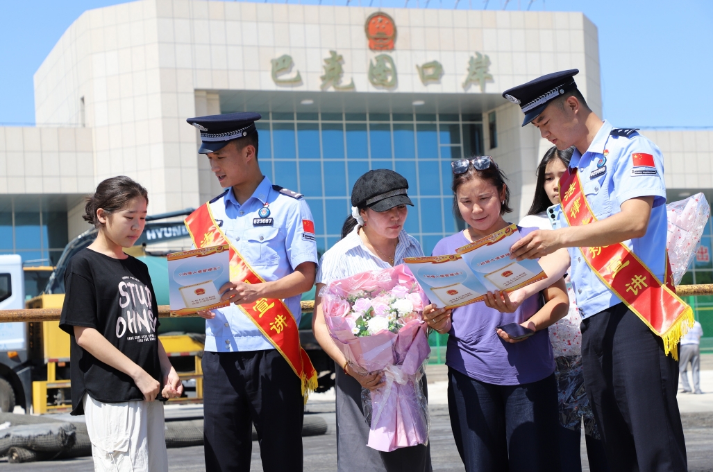 7月9日,新疆出入境邊防檢查站總站巴克圖出入境邊防檢查站執(zhí)勤民警深入國(guó)門口岸,開展《中華人民共和國(guó)出境入境管理法》普法宣傳活動(dòng)。其間,執(zhí)勤民警在口岸旅檢大廳、限定區(qū)域等地,通過(guò)發(fā)放宣傳冊(cè)、法律解讀、現(xiàn)場(chǎng)答疑等形式,向出入境旅客普及法律知識(shí),提升出入境旅客的守法意識(shí),為口岸安全穩(wěn)定筑牢法治根基和安全屏障。