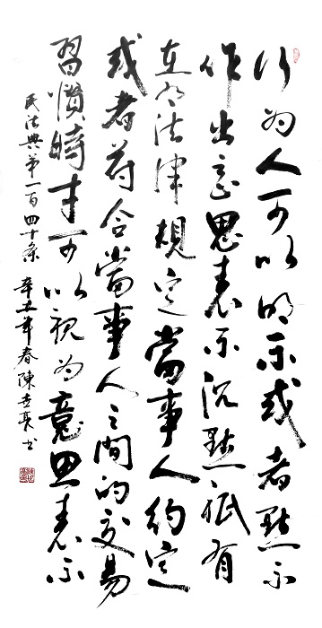 “書·法”活動(dòng)以書寫《中華人民共和國民法典》法條開筆,未來將對(duì)準(zhǔn)更多的法律。