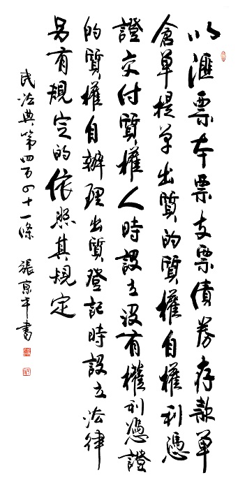 民法典第四百四十一條 以匯票、本票、支票、債券、存款單、倉(cāng)單、提單出質(zhì)的,質(zhì)權(quán)自權(quán)利憑證交付質(zhì)權(quán)人時(shí)設(shè)立;沒(méi)有權(quán)利憑證的,質(zhì)權(quán)自辦理出質(zhì)登記時(shí)設(shè)立。法律另有規(guī)定的,依照其規(guī)定。