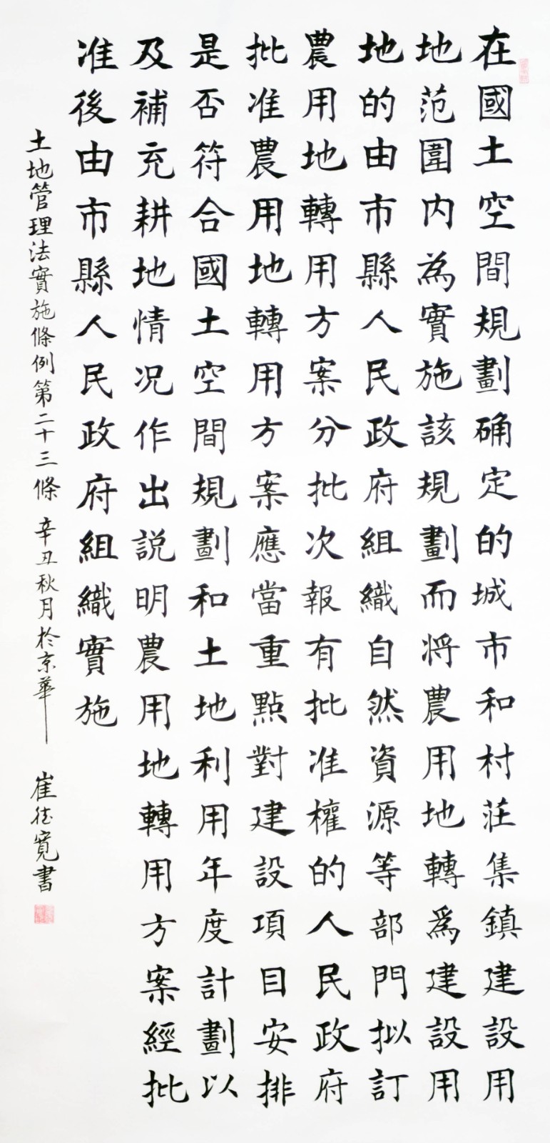 繼1600余位書法家參與書寫《中華人民共和國(guó)民法典》全部1260條法條之后,法治日?qǐng)?bào)社聯(lián)合自然資源部法規(guī)司、自然資源部書畫研究會(huì)和北京昌平書法家協(xié)會(huì),將筆端對(duì)準(zhǔn)土地管理“一法一條例”,即《中華人民共和國(guó)土地管理法》和《中華人民共和國(guó)土地管理法實(shí)施條例》。