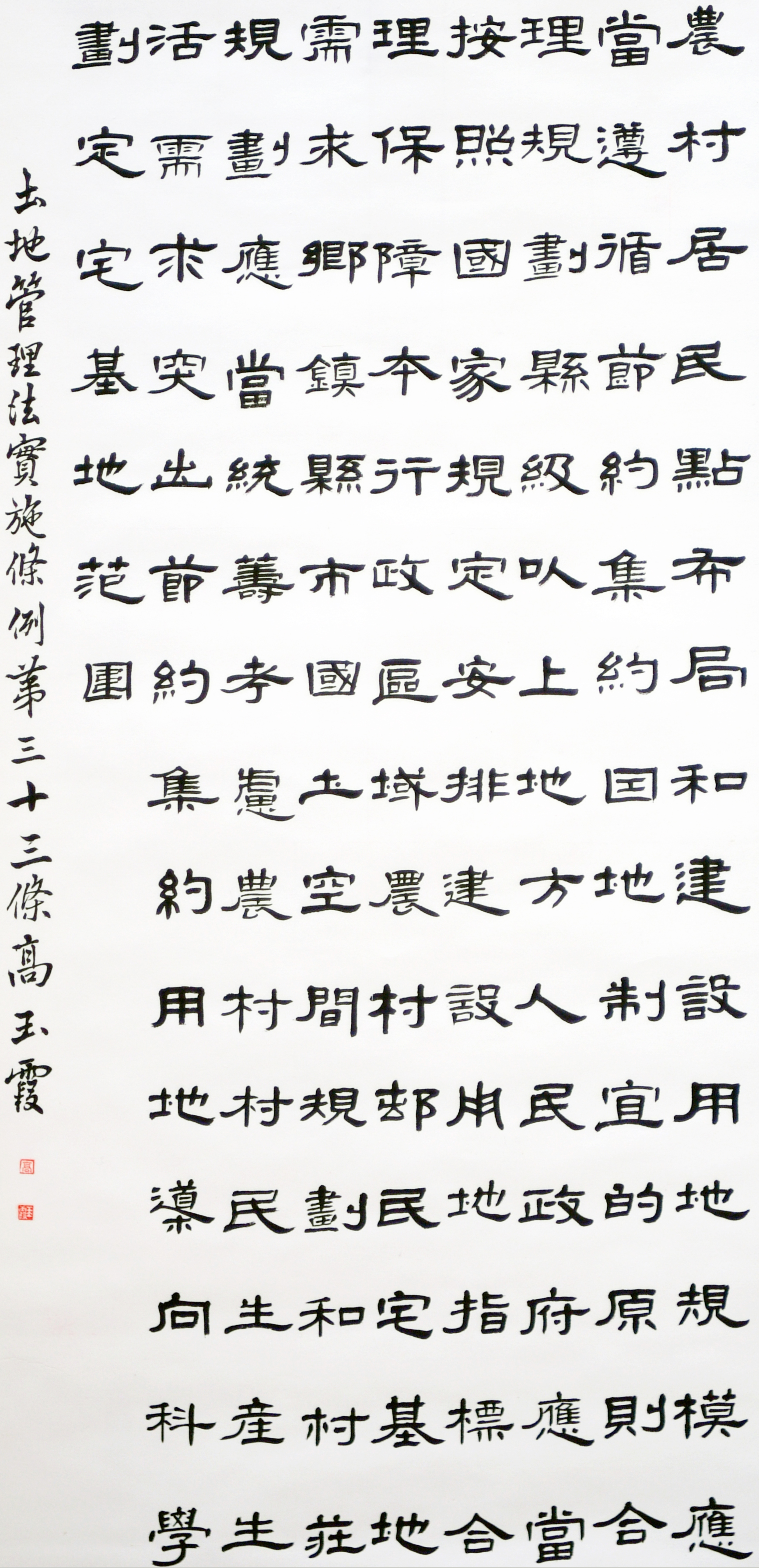 繼1600余位書法家參與書寫《中華人民共和國民法典》全部1260條法條之后,法治日報社聯(lián)合自然資源部法規(guī)司、自然資源部書畫研究會和北京昌平書法家協(xié)會,將筆端對準土地管理“一法一條例”,即《中華人民共和國土地管理法》和《中華人民共和國土地管理法實施條例》。
