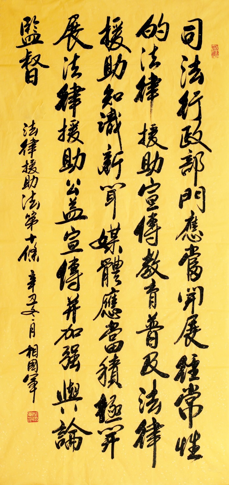 “書(shū)·法”活動(dòng)旨在為創(chuàng)新法治宣傳教育,多開(kāi)一點(diǎn)腦洞、多花一點(diǎn)心思、多出一點(diǎn)力量、多做一點(diǎn)貢獻(xiàn),引領(lǐng)和推動(dòng)更多的人拿起筆來(lái)學(xué)法、寫(xiě)法,在不斷“書(shū)·法”過(guò)程中,提升自身的法治素養(yǎng),在全社會(huì)弘揚(yáng)法治精神。