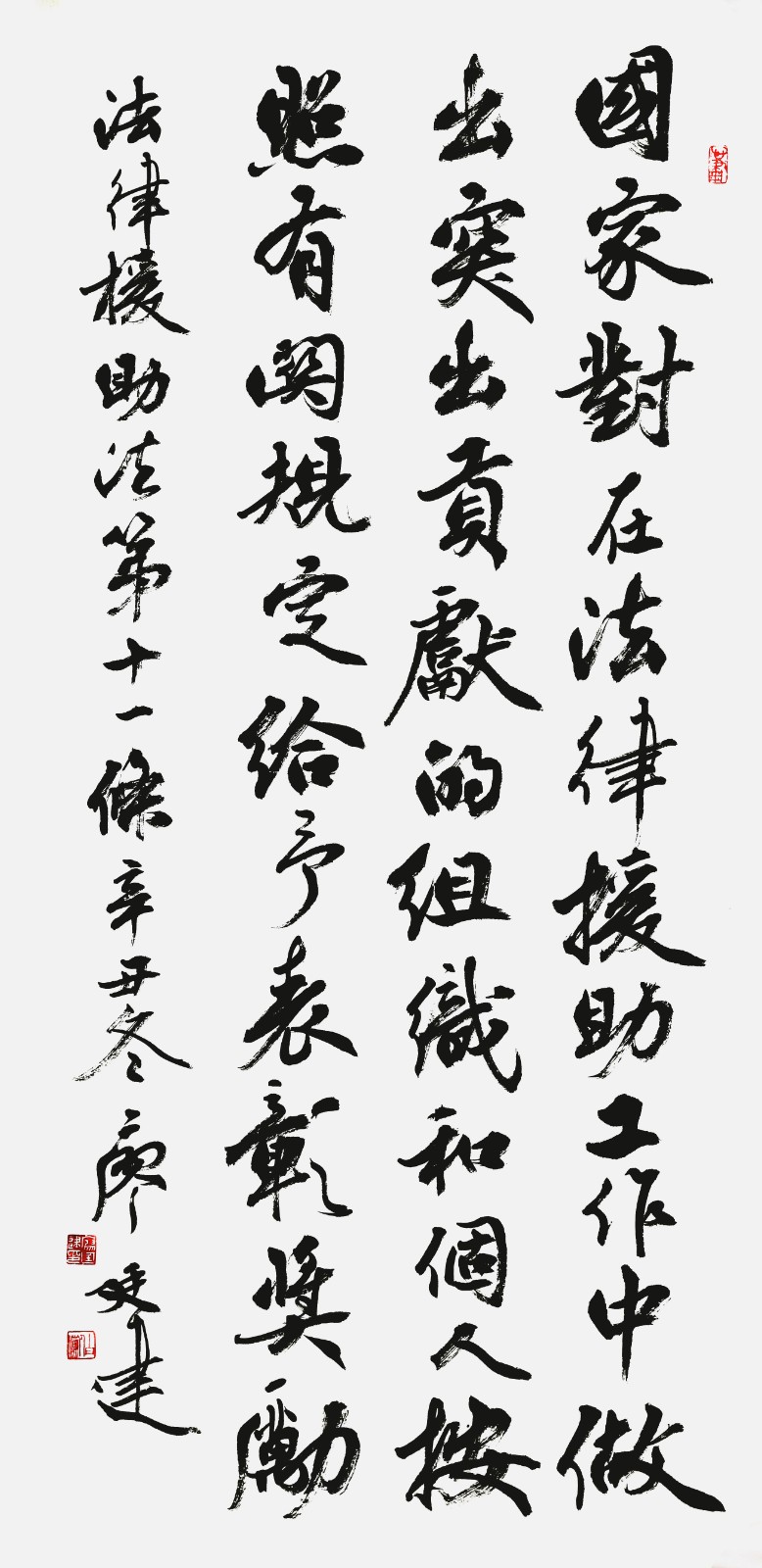法律援助法第十一條 國家對在法律援助工作中做出突出貢獻(xiàn)的組織和個(gè)人,按照有關(guān)規(guī)定給予表彰、獎(jiǎng)勵(lì)。