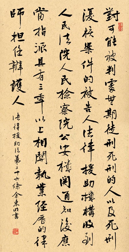 法律援助法第二十六條 對(duì)可能被判處無(wú)期徒刑、死刑的人,以及死刑復(fù)核案件的被告人,法律援助機(jī)構(gòu)收到人民法院、人民檢察院、公安機(jī)關(guān)通知后,應(yīng)當(dāng)指派具有三年以上相關(guān)執(zhí)業(yè)經(jīng)歷的律師擔(dān)任辯護(hù)人。