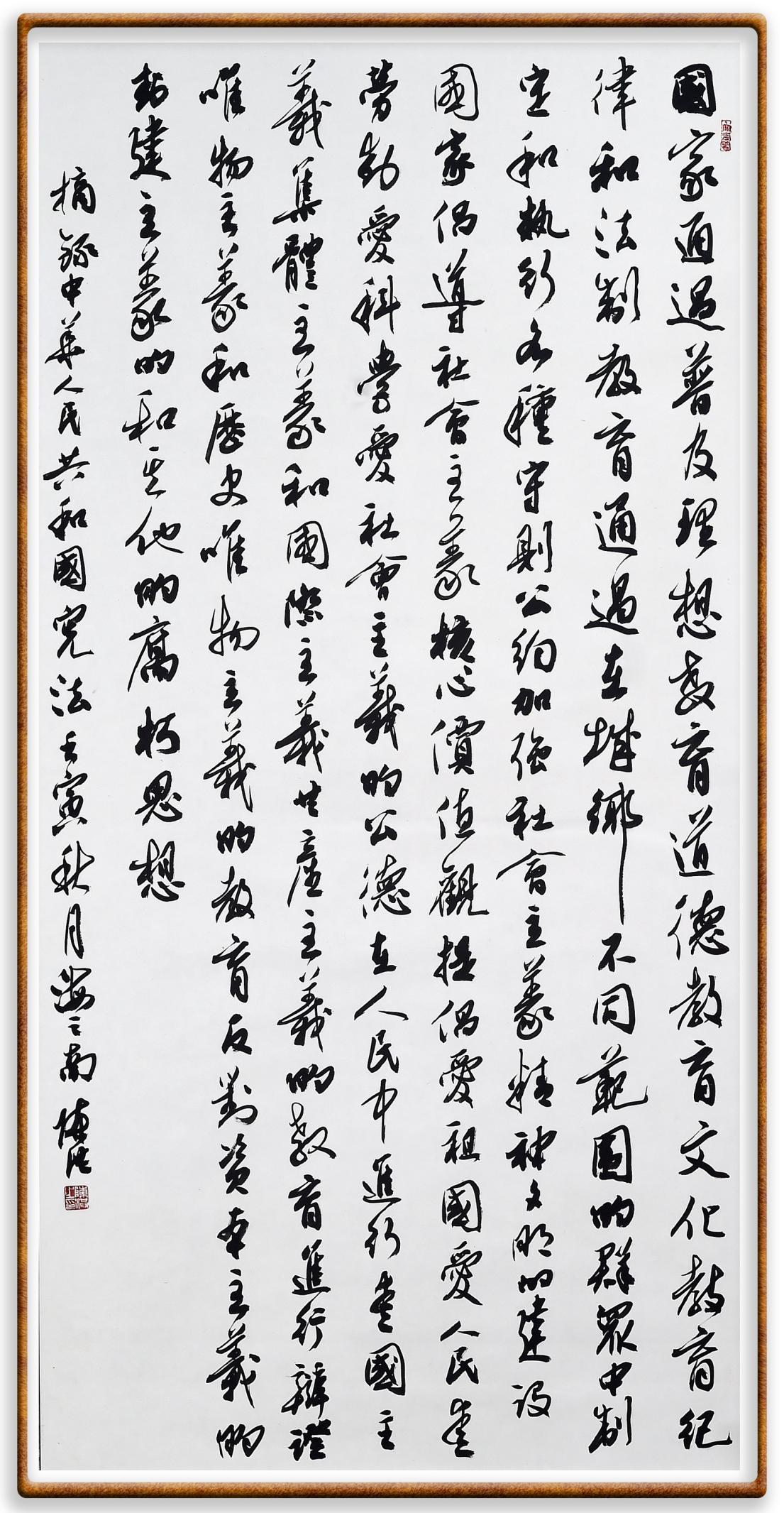 繼《中華人民共和國(guó)民法典》《中華人民共和國(guó)土地管理法》《中華人民共和國(guó)土地管理法實(shí)施條例》《中華人民共和國(guó)法律援助法》之后,法治日?qǐng)?bào)社聯(lián)合北京市司法局、北京市書法家協(xié)會(huì),將筆端對(duì)準(zhǔn)《中華人民共和國(guó)憲法》和《中華人民共和國(guó)行政處罰法》。