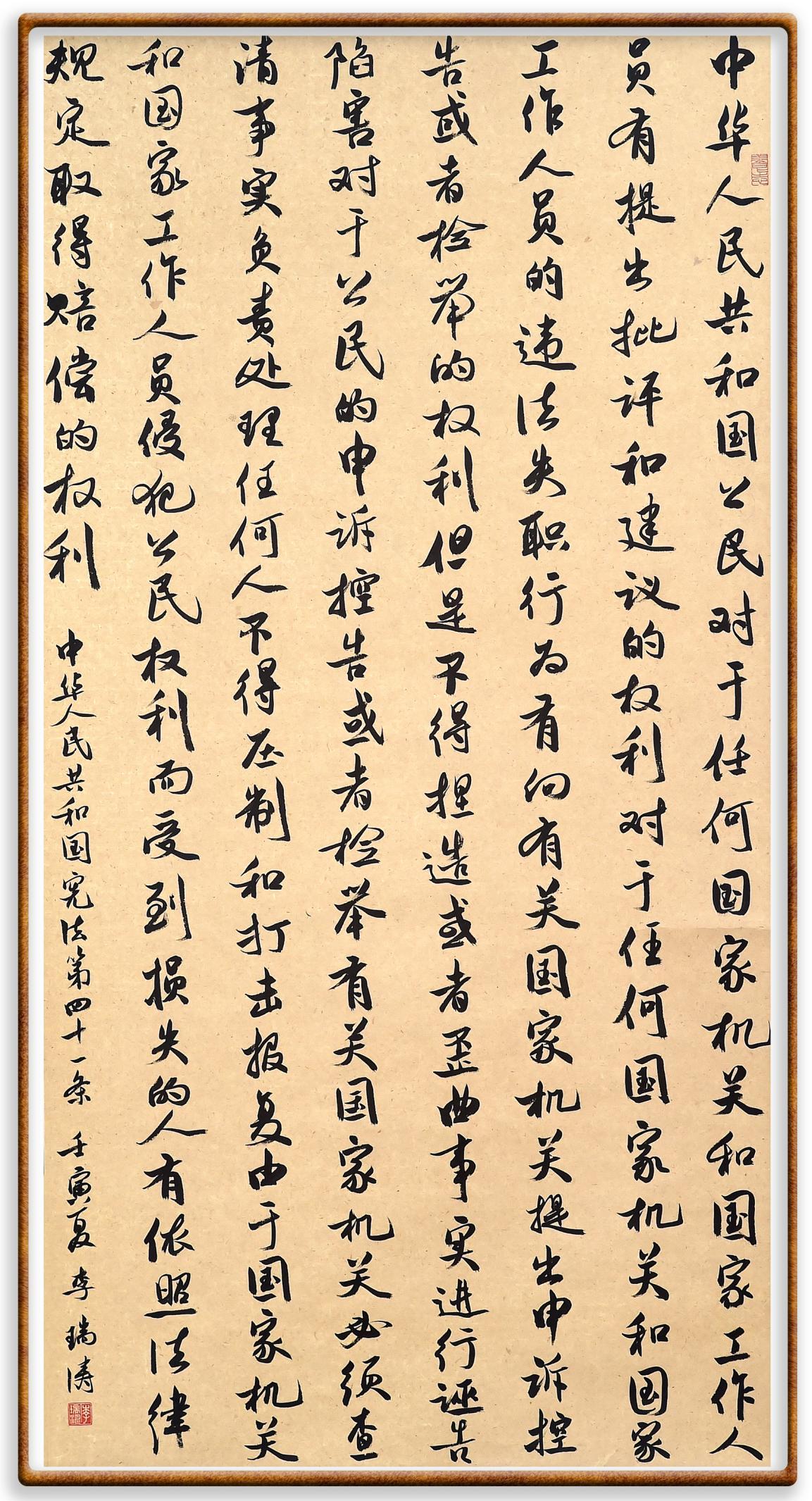 繼《中華人民共和國民法典》《中華人民共和國土地管理法》《中華人民共和國土地管理法實施條例》《中華人民共和國法律援助法》之后,法治日報社聯(lián)合北京市司法局、北京市書法家協(xié)會,將筆端對準(zhǔn)《中華人民共和國憲法》和《中華人民共和國行政處罰法》。