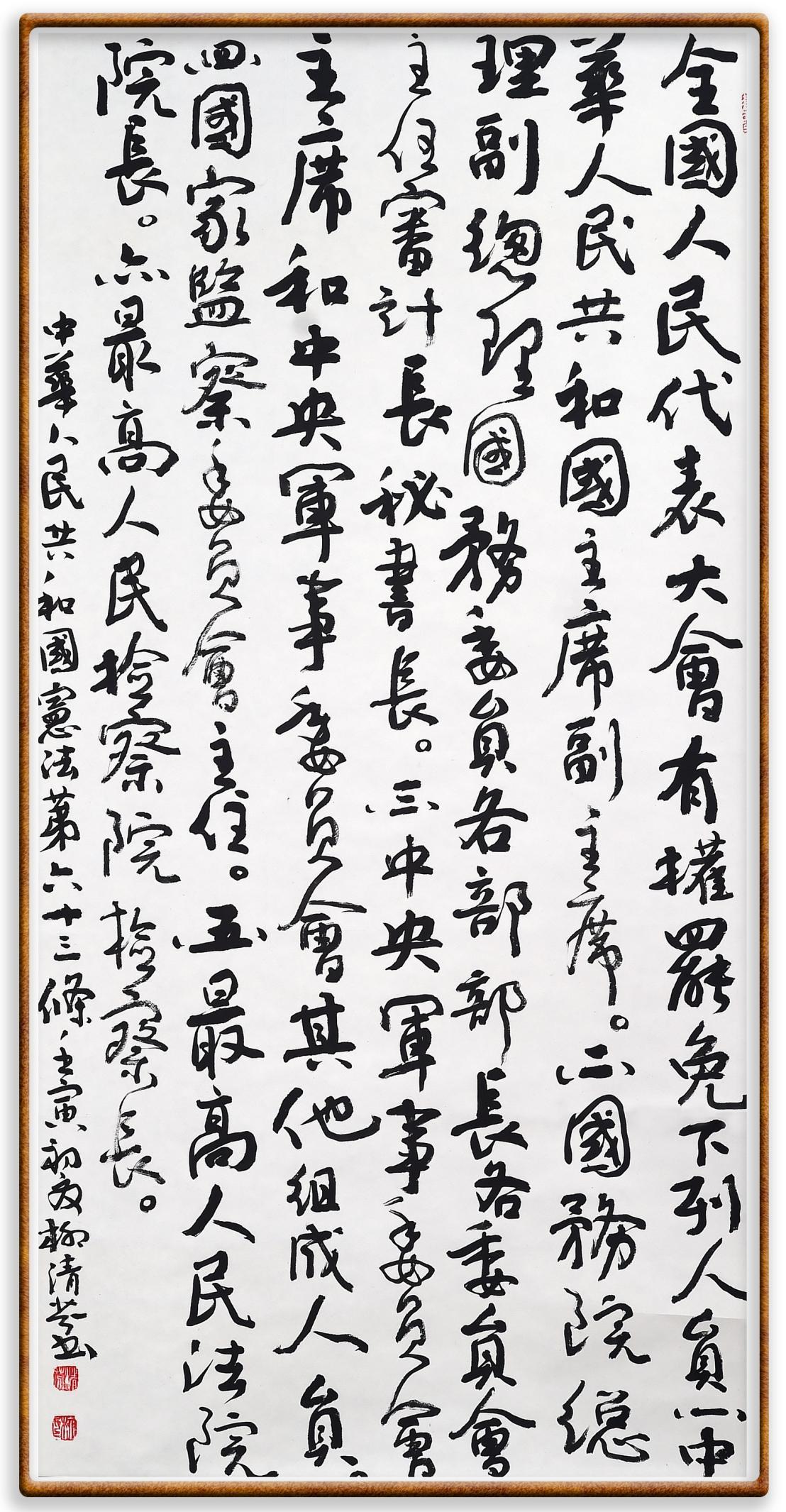 繼《中華人民共和國民法典》《中華人民共和國土地管理法》《中華人民共和國土地管理法實(shí)施條例》《中華人民共和國法律援助法》之后,法治日報(bào)社聯(lián)合北京市司法局、北京書法家協(xié)會(huì),將筆端對(duì)準(zhǔn)《中華人民共和國憲法》和《中華人民共和國行政處罰法》。