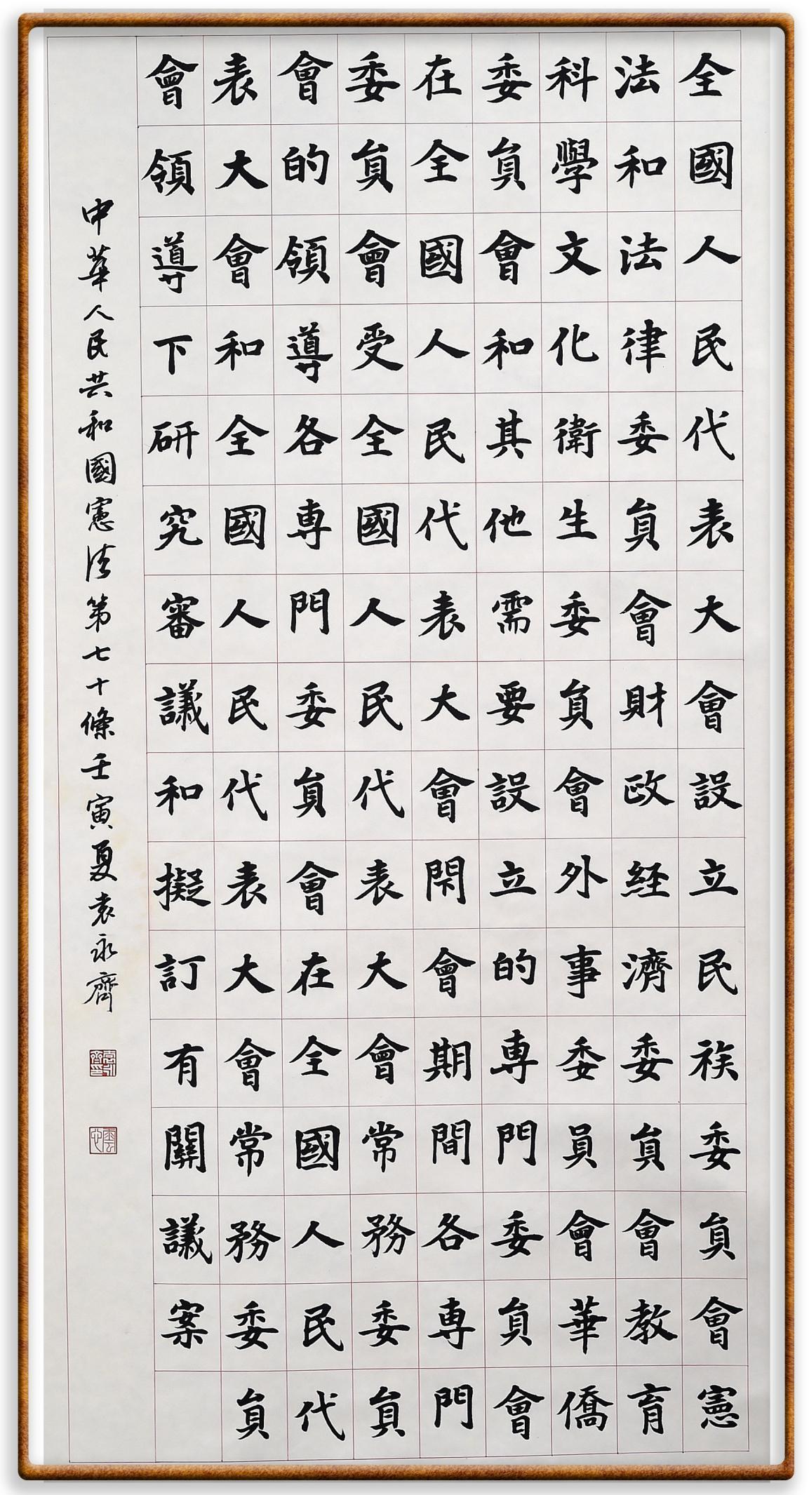 繼《中華人民共和國(guó)民法典》《中華人民共和國(guó)土地管理法》《中華人民共和國(guó)土地管理法實(shí)施條例》《中華人民共和國(guó)法律援助法》之后,法治日?qǐng)?bào)社聯(lián)合北京市司法局、北京書法家協(xié)會(huì),將筆端對(duì)準(zhǔn)《中華人民共和國(guó)憲法》和《中華人民共和國(guó)行政處罰法》。