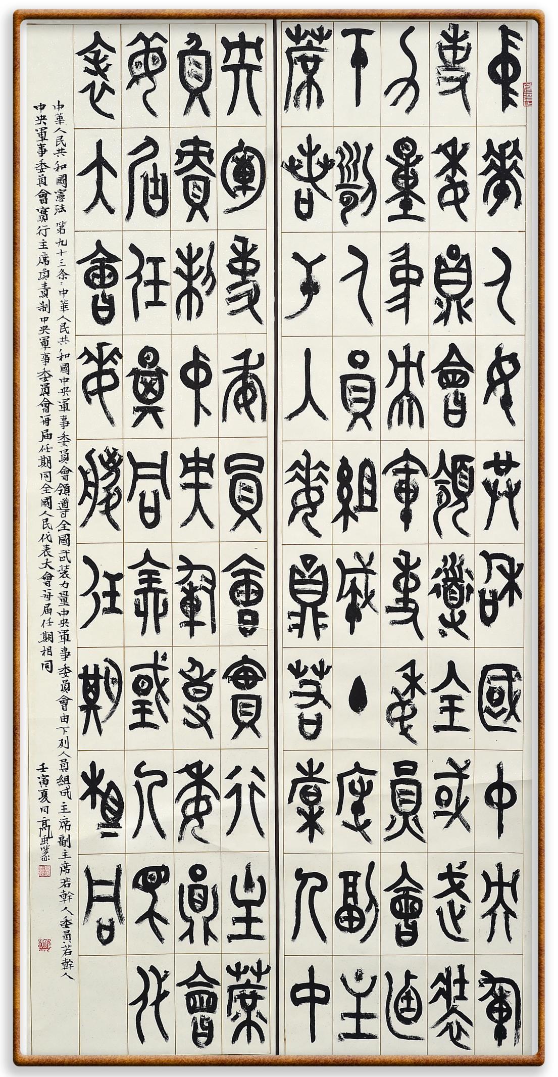 繼《中華人民共和國民法典》《中華人民共和國土地管理法》《中華人民共和國土地管理法實施條例》《中華人民共和國法律援助法》之后,法治日報社聯(lián)合北京市司法局、北京書法家協(xié)會,將筆端對準(zhǔn)《中華人民共和國憲法》和《中華人民共和國行政處罰法》。