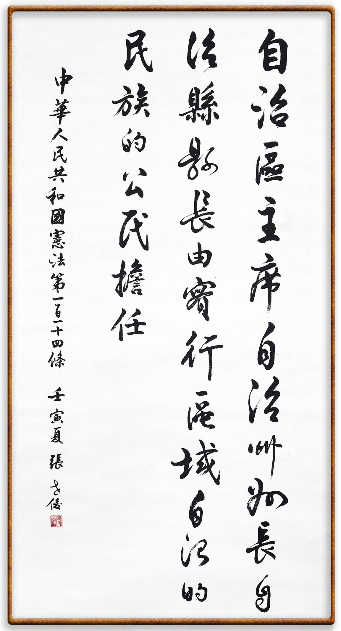 繼《中華人民共和國民法典》《中華人民共和國土地管理法》《中華人民共和國土地管理法實(shí)施條例》《中華人民共和國法律援助法》之后,法治日報社聯(lián)合北京市司法局、北京書法家協(xié)會,將筆端對準(zhǔn)《中華人民共和國憲法》和《中華人民共和國行政處罰法》。