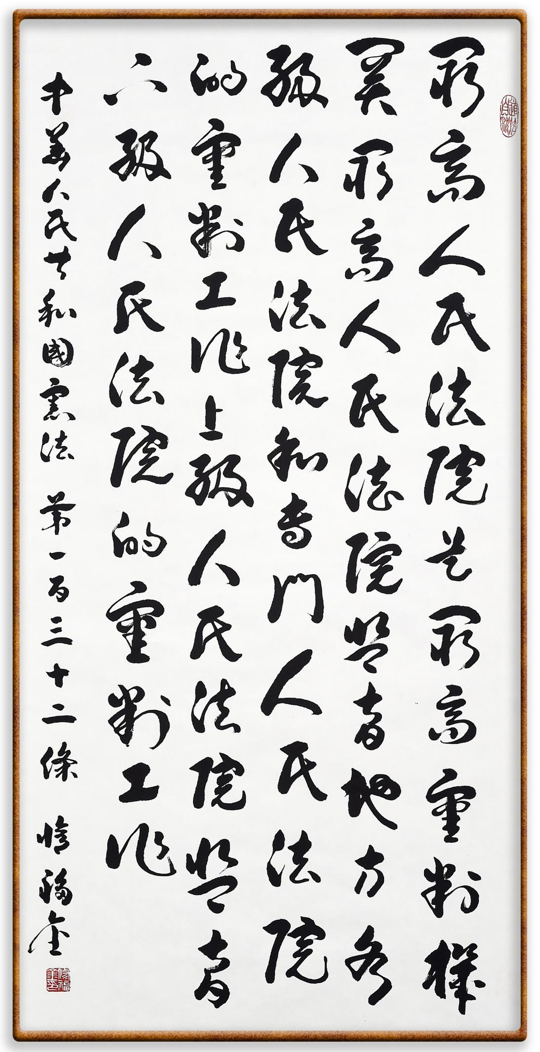 繼《中華人民共和國民法典》《中華人民共和國土地管理法》《中華人民共和國土地管理法實施條例》《中華人民共和國法律援助法》之后,法治日報社聯(lián)合北京市司法局、北京書法家協(xié)會,將筆端對準《中華人民共和國憲法》和《中華人民共和國行政處罰法》。