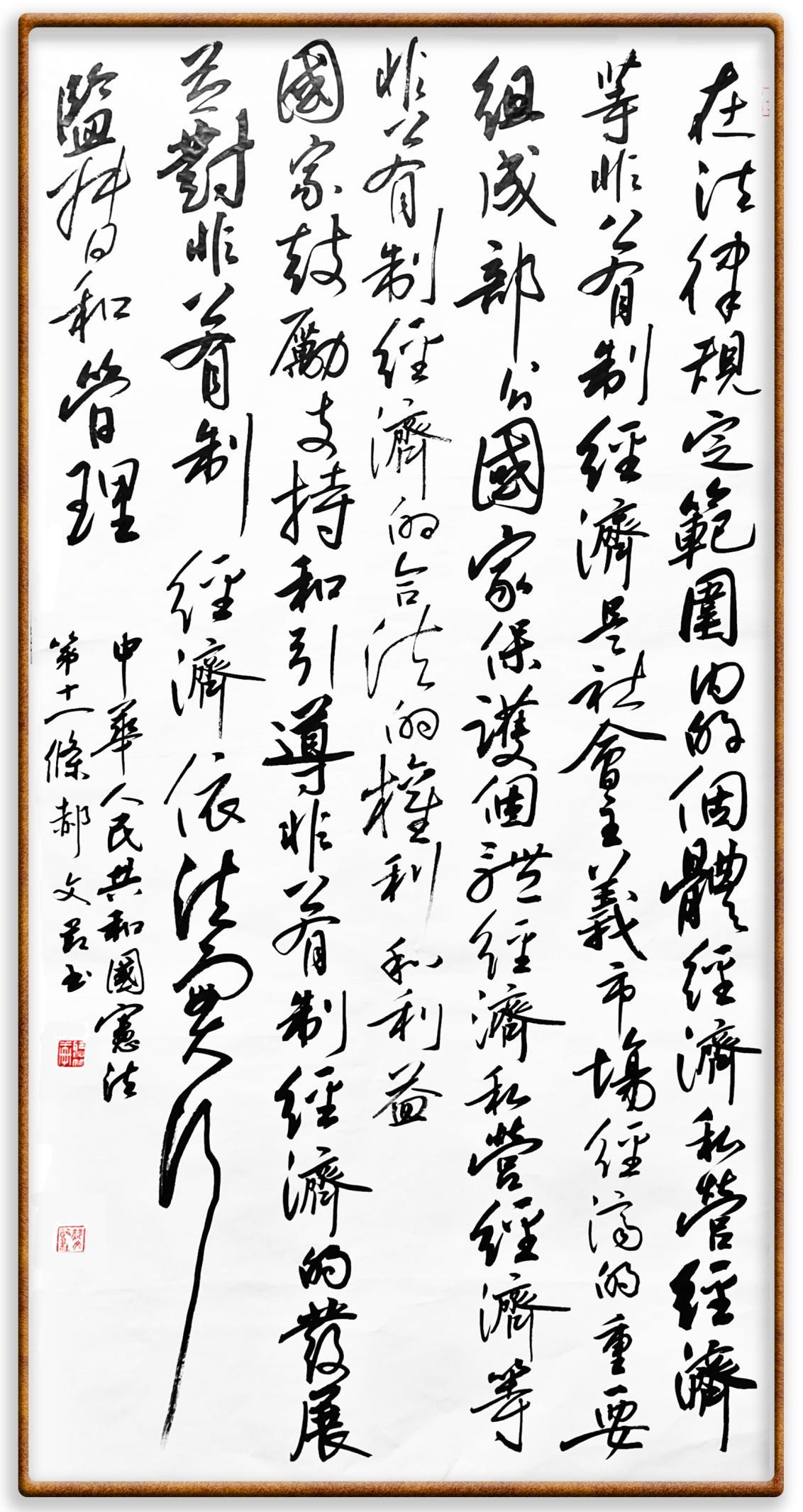 繼《中華人民共和國民法典》《中華人民共和國土地管理法》《中華人民共和國土地管理法實施條例》《中華人民共和國法律援助法》之后,法治日報社聯(lián)合北京市司法局、北京書法家協(xié)會,將筆端對準《中華人民共和國憲法》和《中華人民共和國行政處罰法》。