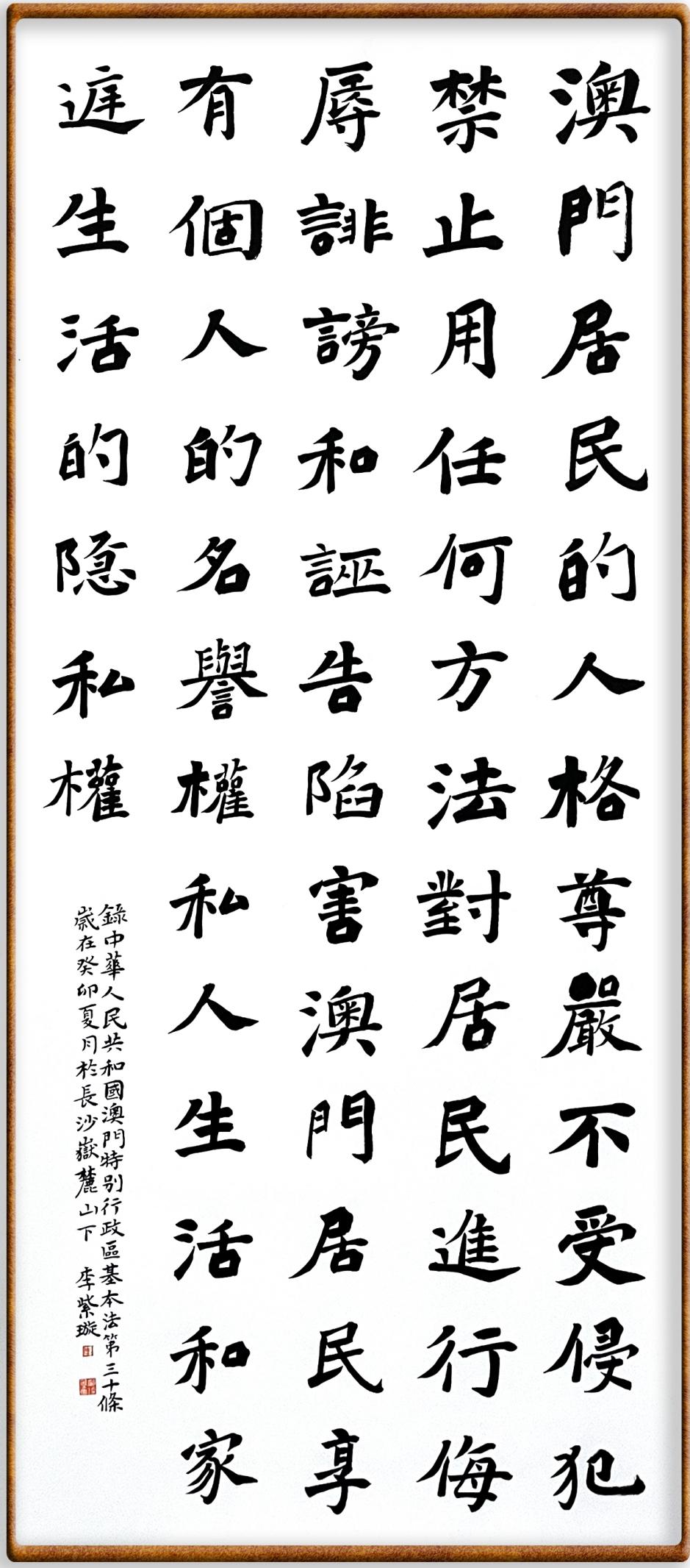 澳門基本法第三十條 澳門居民的人格尊嚴不受侵犯。禁止用任何方法對居民進行侮辱、誹謗和誣告陷害。