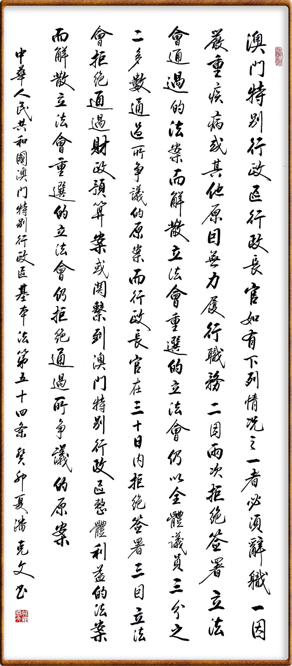澳門基本法第五十四條 澳門特別行政區(qū)行政長官如有下列情況之一者必須辭職: