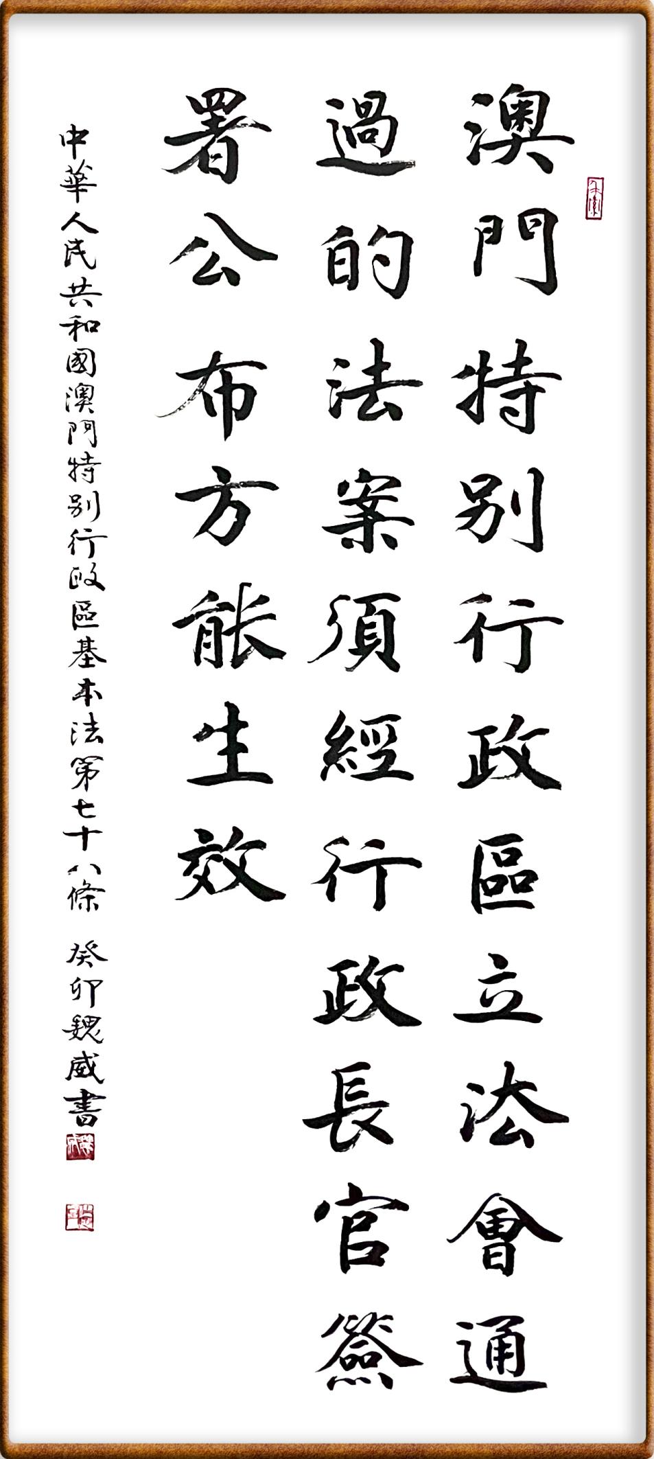 澳門基本法第七十八條 澳門特別行政區(qū)立法會通過的法案,須經(jīng)行政長官簽署、公布,方能生效。