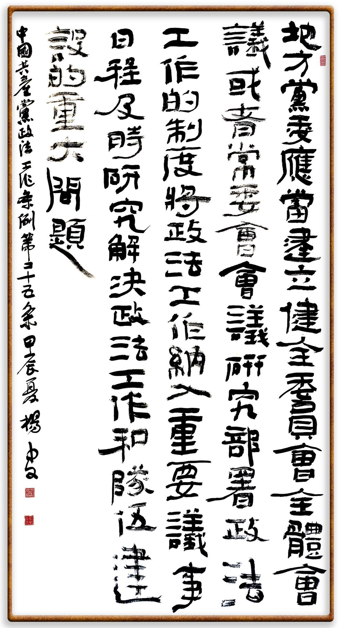 《中國(guó)共產(chǎn)黨政法工作條例》對(duì)黨領(lǐng)導(dǎo)新時(shí)代政法工作進(jìn)行全面制度擘畫,為黨領(lǐng)導(dǎo)政法工作提供基本遵循,具有重大而深遠(yuǎn)的意義。為學(xué)習(xí)好、宣傳好、貫徹好、實(shí)施好這部黨內(nèi)法規(guī),繼《中華人民共和國(guó)民法典》《中華人民共和國(guó)憲法》《信訪工作條例》《中華人民共和國(guó)澳門特別行政區(qū)基本法》《中華人民共和國(guó)香港特別行政區(qū)基本法》等法律法規(guī)之后,“書·法”系列活動(dòng)將筆端對(duì)準(zhǔn)《中國(guó)共產(chǎn)黨政法工作條例》。