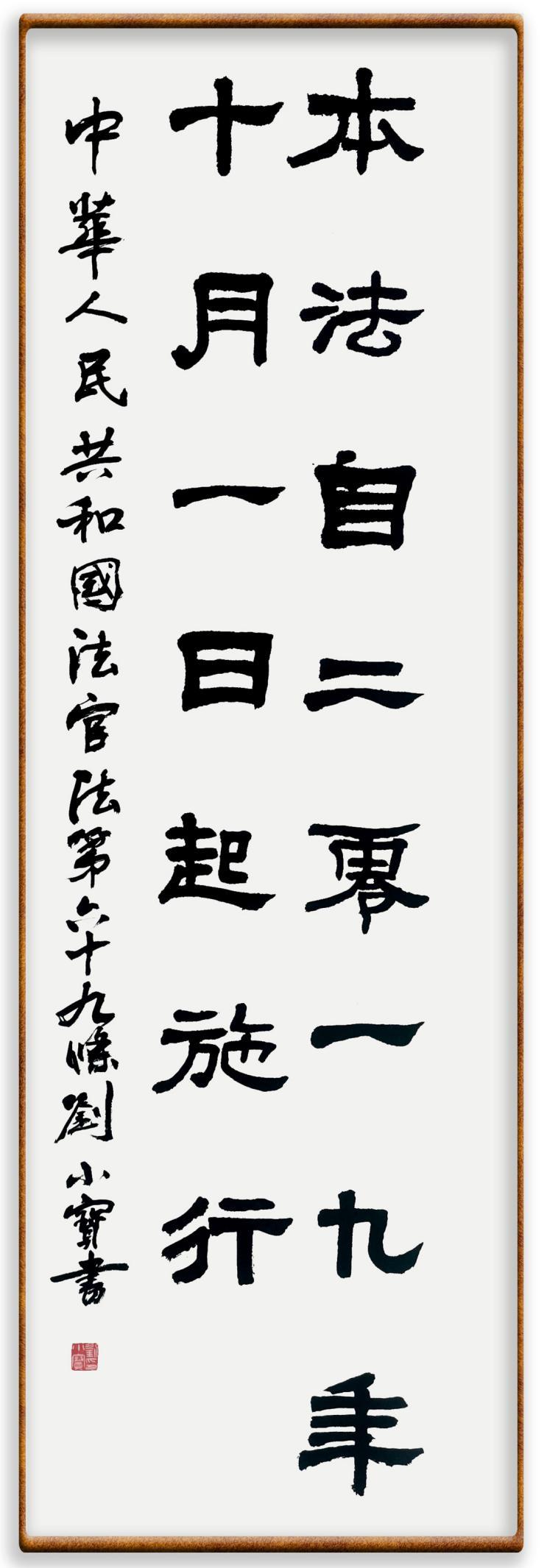 劉小寶,中國法官文聯(lián)常務(wù)理事兼書法專業(yè)委員會副主任委員,中國法學會法治文化研究會第二屆理事會理事,最高人民法院行裝局原副局長。