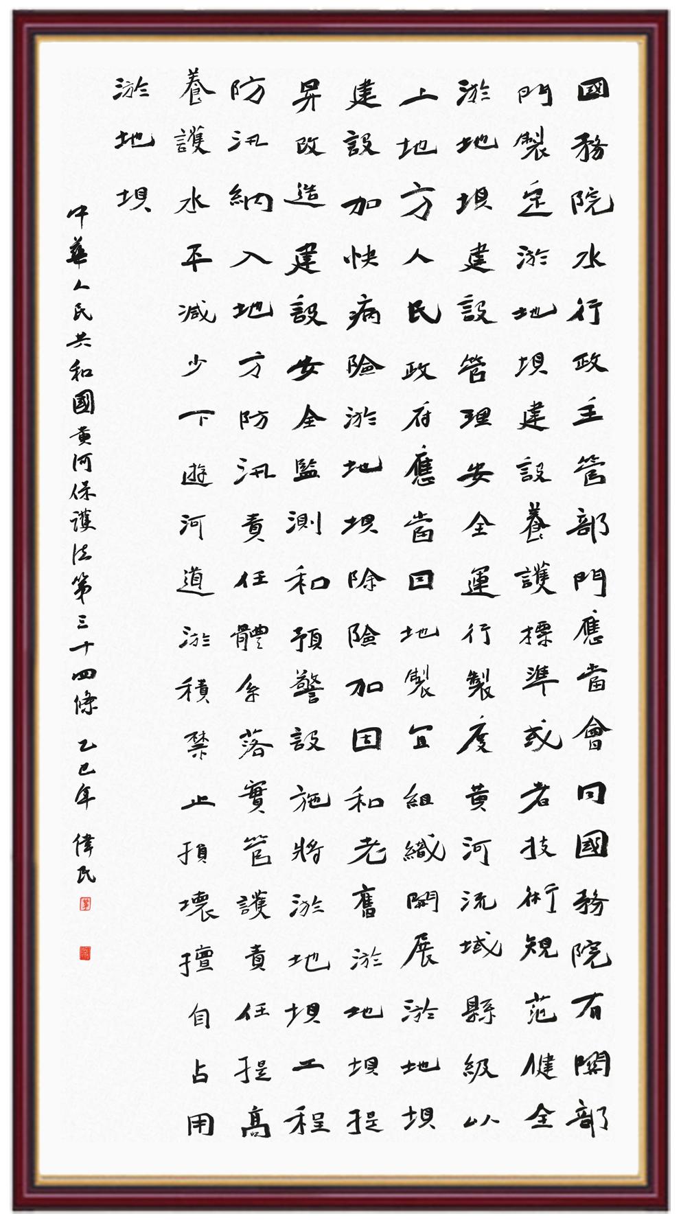 黃河寧,天下平。黃河是中華民族的發(fā)源地和搖籃,保護黃河是事關(guān)中華民族偉大復興的千秋大計?!吨腥A人民共和國黃河保護法》為推進水資源節(jié)約集約利用、保護傳承弘揚黃河文化、推動黃河流域生態(tài)保護和高質(zhì)量發(fā)展提供了有力法治保障。繼書寫《中華人民共和國民法典》《中華人民共和國憲法》《中華人民共和國澳門特別行政區(qū)基本法》《中華人民共和國香港特別行政區(qū)基本法》《中華人民共和國國旗法》《中華人民共和國國徽法》《中華人民共和國國歌法》《中華人民共和國法官法》等法律法規(guī)之后,法制日報社聯(lián)合沿黃九?。▍^(qū))司法廳、書法家協(xié)會,將筆端對準《中華人民共和國黃河保護法》。