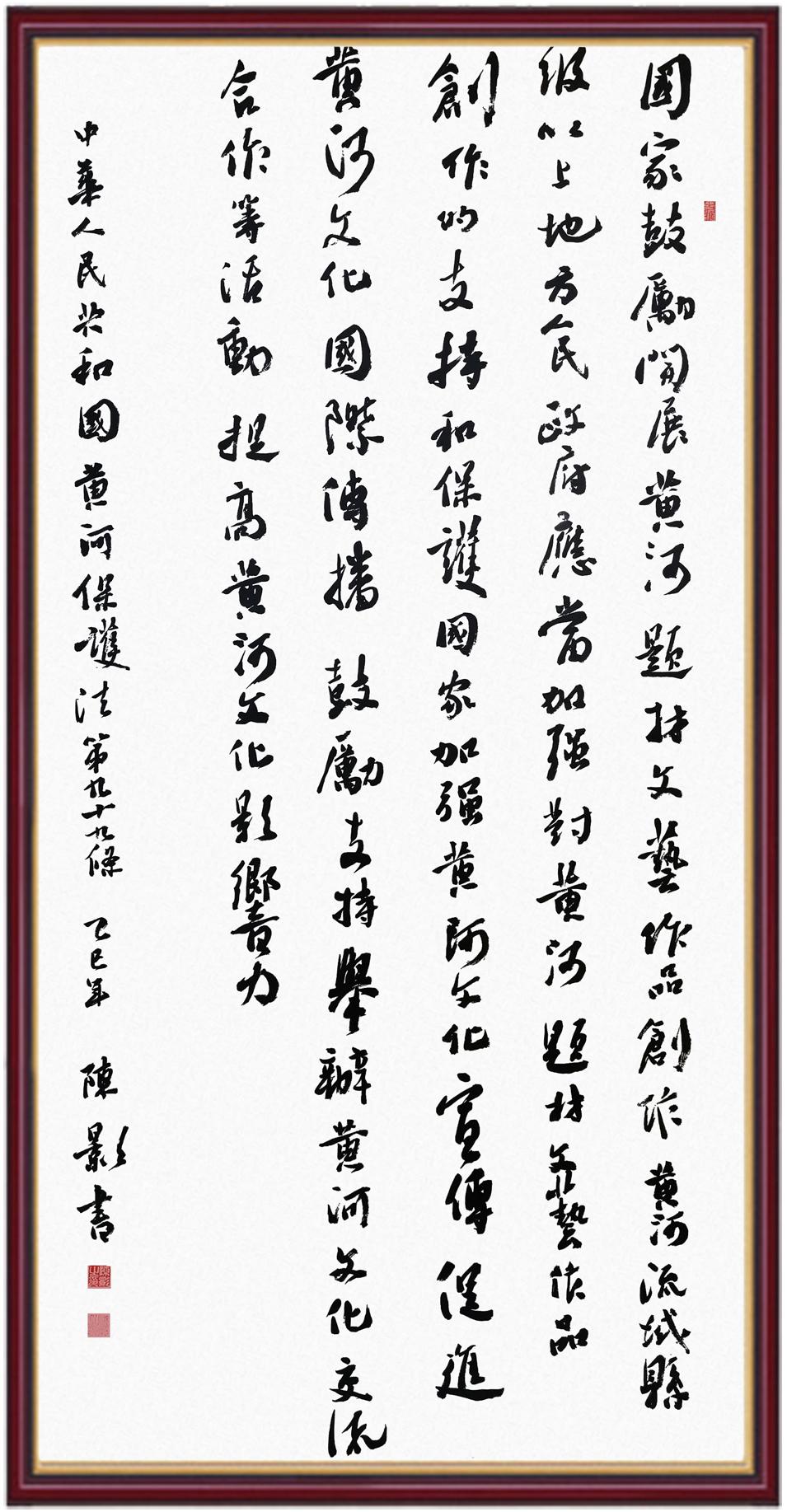 黃河寧,天下平。黃河是中華民族的發(fā)源地和搖籃,保護黃河是事關中華民族偉大復興的千秋大計。《中華人民共和國黃河保護法》為推進水資源節(jié)約集約利用、保護傳承弘揚黃河文化、推動黃河流域生態(tài)保護和高質量發(fā)展提供了有力法治保障。繼書寫《中華人民共和國民法典》《中華人民共和國憲法》《中華人民共和國澳門特別行政區(qū)基本法》《中華人民共和國香港特別行政區(qū)基本法》《中華人民共和國國旗法》《中華人民共和國國徽法》《中華人民共和國國歌法》《中華人民共和國法官法》等法律法規(guī)之后,法制日報社聯(lián)合沿黃九?。▍^(qū))司法廳、書法家協(xié)會,將筆端對準《中華人民共和國黃河保護法》。