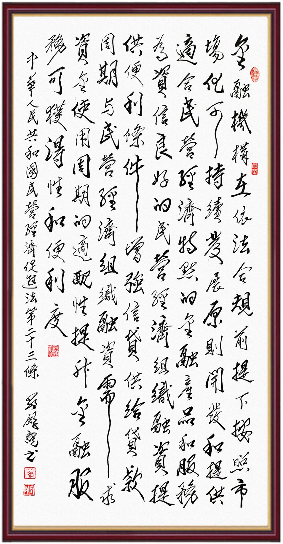 《中華人民共和國(guó)民營(yíng)經(jīng)濟(jì)促進(jìn)法》自今年5月20日起施行。作為我國(guó)首部專門關(guān)于民營(yíng)經(jīng)濟(jì)發(fā)展的基礎(chǔ)性法律,民營(yíng)經(jīng)濟(jì)促進(jìn)法將支持和保障民營(yíng)經(jīng)濟(jì)發(fā)展的法律制度融入中國(guó)特色社會(huì)主義法律體系,具有重大的法治意義,為促進(jìn)民營(yíng)經(jīng)濟(jì)持續(xù)、健康、高質(zhì)量發(fā)展提供了堅(jiān)實(shí)的法治保障。為更好地學(xué)習(xí)、宣傳、貫徹這部法律,法治日?qǐng)?bào)社聯(lián)合司法部普法與依法治理局,開展“‘書·法’系列活動(dòng)之書寫《中華人民共和國(guó)民營(yíng)經(jīng)濟(jì)促進(jìn)法》”活動(dòng)。