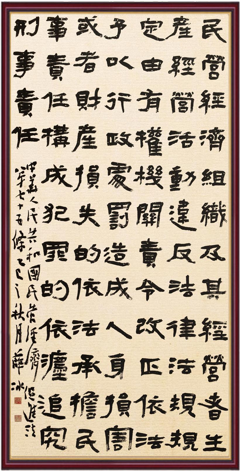 《中華人民共和國民營經(jīng)濟(jì)促進(jìn)法》自今年5月20日起施行。作為我國首部專門關(guān)于民營經(jīng)濟(jì)發(fā)展的基礎(chǔ)性法律,民營經(jīng)濟(jì)促進(jìn)法將支持和保障民營經(jīng)濟(jì)發(fā)展的法律制度融入中國特色社會(huì)主義法律體系,具有重大的法治意義,為促進(jìn)民營經(jīng)濟(jì)持續(xù)、健康、高質(zhì)量發(fā)展提供了堅(jiān)實(shí)的法治保障。為更好地學(xué)習(xí)、宣傳、貫徹這部法律,法治日?qǐng)?bào)社聯(lián)合司法部普法與依法治理局,開展“‘書·法’系列活動(dòng)之書寫《中華人民共和國民營經(jīng)濟(jì)促進(jìn)法》”活動(dòng)。