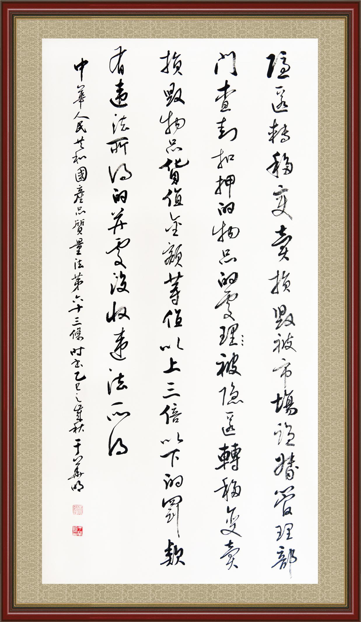 2020年7月11日,由法治日報社主辦的“書·法”系列活動正式啟動,先后書寫《中華人民共和國民法典》《中華人民共和國憲法》《中華人民共和國民營經(jīng)濟促進法》等20部法律法規(guī)。