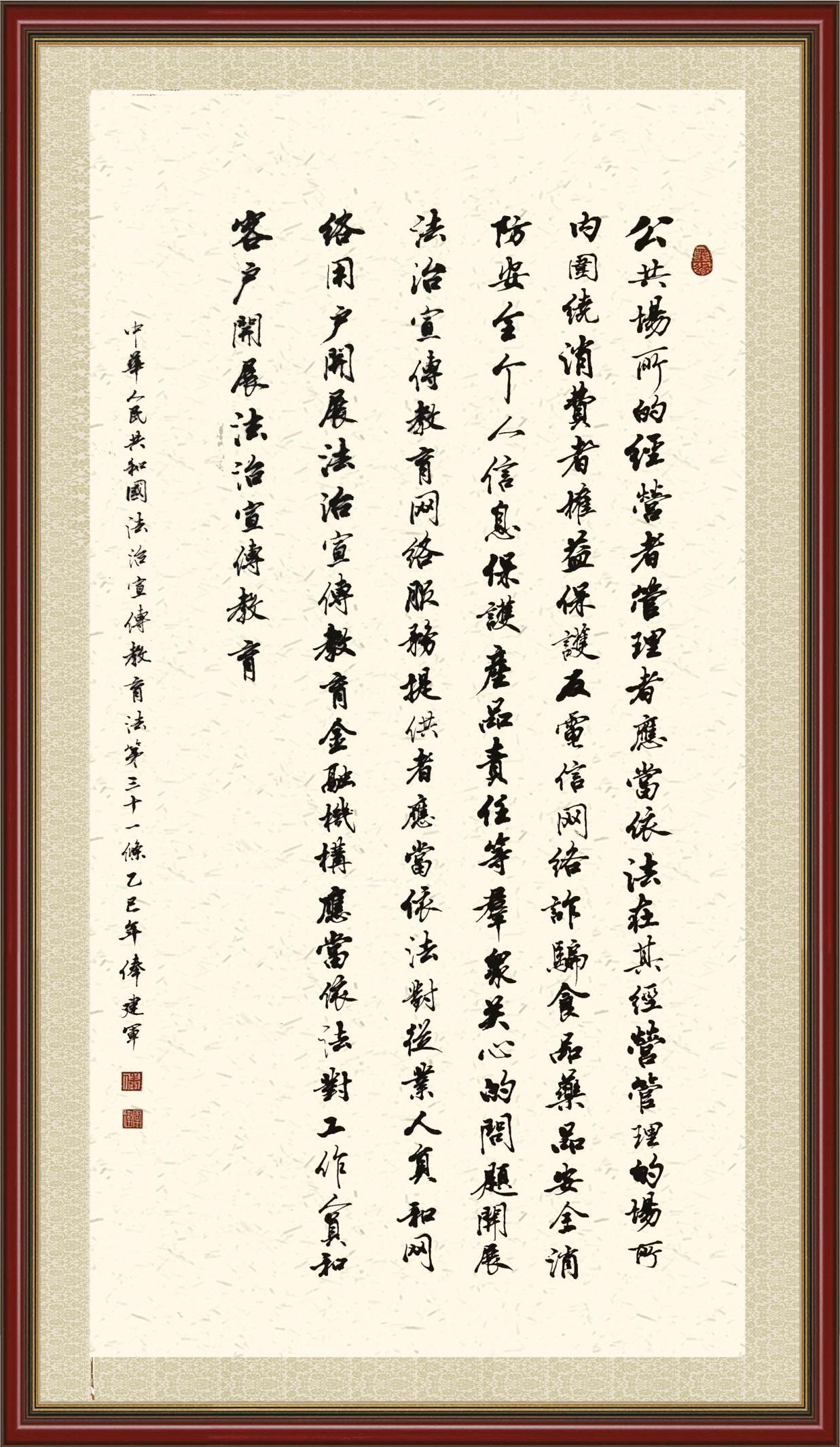 《中華人民共和國法治宣傳教育法》自2025年11月1日起開始施行。法治宣傳教育是全面依法治國的長期基礎性工作。法治宣傳教育法對提升全民法治素養(yǎng)和社會治理法治化水平、推動建設更高水平的社會主義法治國家具有重要意義。為更好地學習、宣傳、貫徹這部法律,法治日報社聯(lián)合司法部普法與依法治理局,開展了“‘書·法’系列活動之書寫《中華人民共和國法治宣傳教育法》”活動。