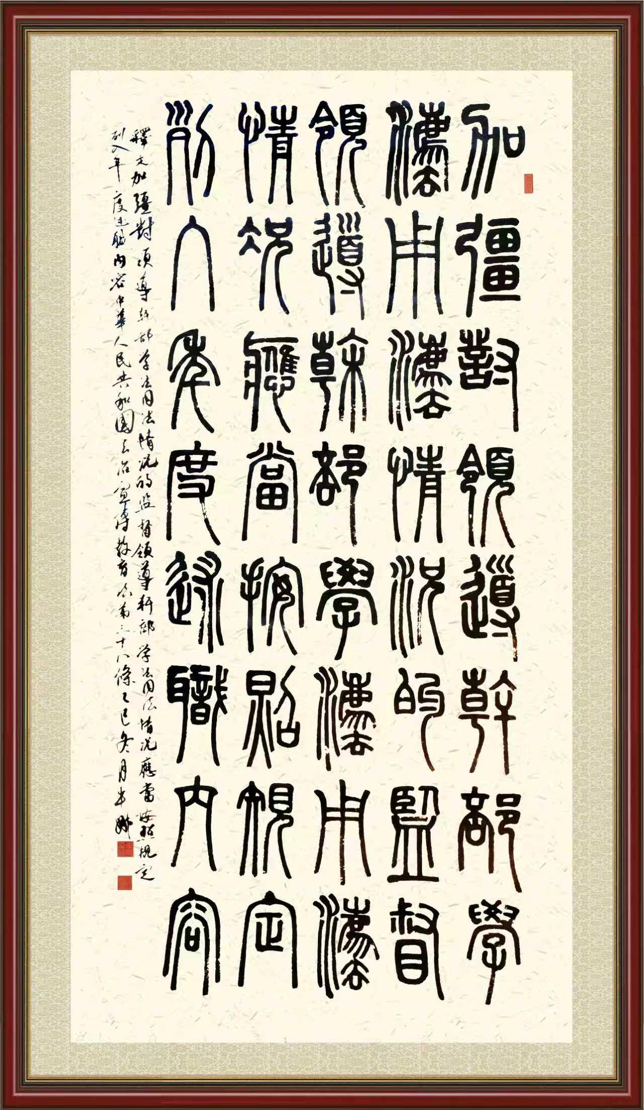 2020年7月11日,由法治日報(bào)社主辦的“書·法”系列活動(dòng)正式啟動(dòng),先后書寫《中華人民共和國民法典》《中華人民共和國憲法》《中華人民共和國民營經(jīng)濟(jì)促進(jìn)法》等21部法律法規(guī)。