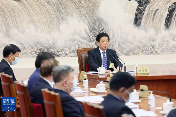 4月19日,十三屆全國人大常委會第一百一十五次委員長會議在北京人民大會堂舉行。栗戰(zhàn)書委員長主持會議。新華社記者?姚大偉?攝