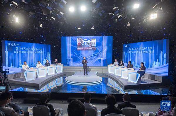 政協(xié)委員、政府部門代表、物業(yè)代表等在廣州市政協(xié)“有事好商量”民生實事協(xié)商平臺,圍繞加強(qiáng)裝修垃圾管理議題展開協(xié)商(2021年11月19日攝)。新華社發(fā)(莊小龍 攝)
