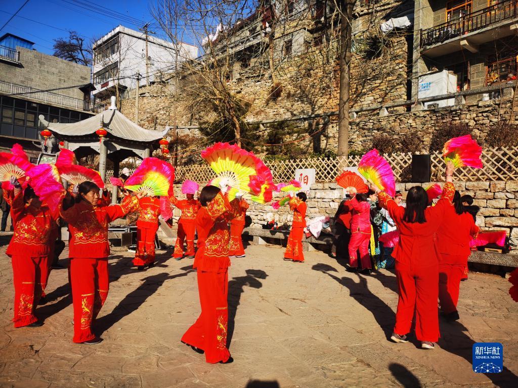 王金莊的村民們在村廣場表演舞蹈。(新華社記者 趙鴻宇攝)