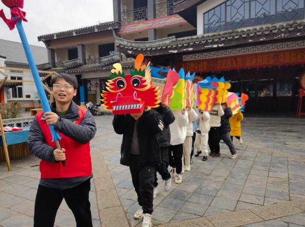 在舞燈時(shí),制作精巧的“龍頭”在前引路,孩子們在舞龍燈的伴奏下,為團(tuán)結(jié)村的村民們帶來了別具一格的舞龍燈的表演,現(xiàn)場歡聲笑語不斷。