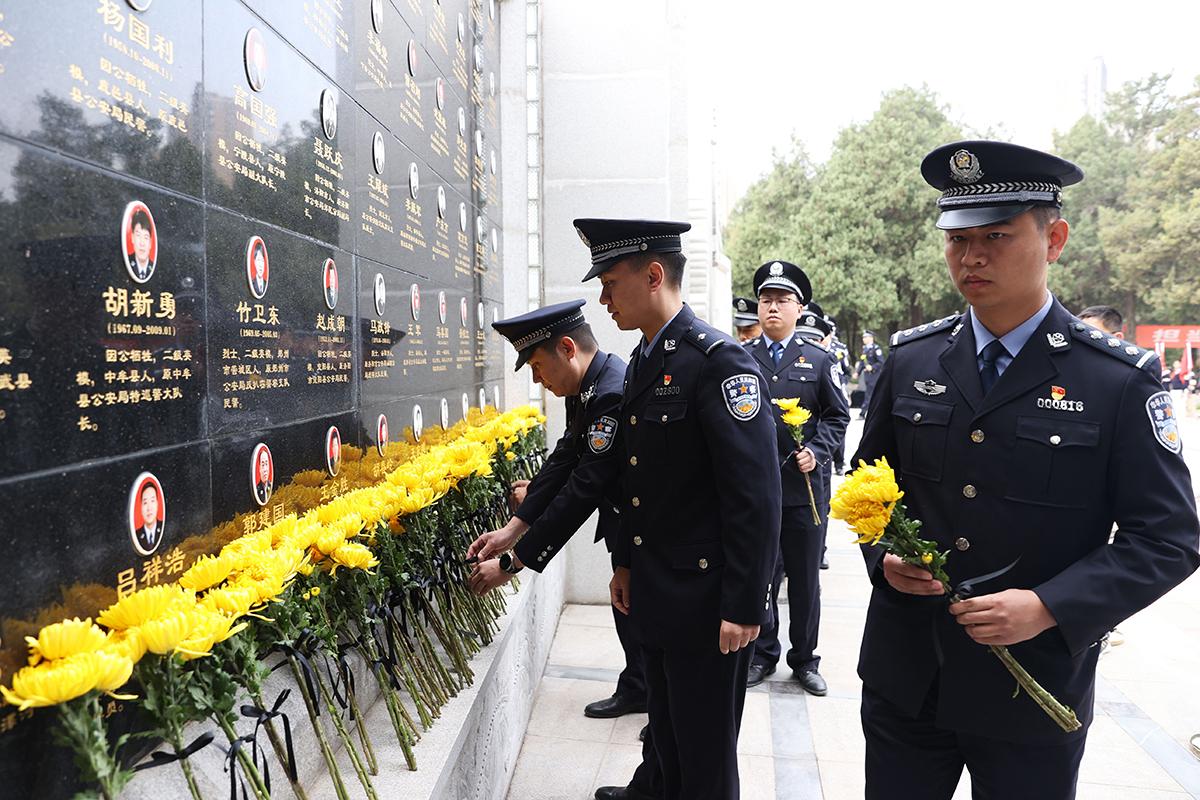 3月31日,河南省公安廳機關(guān)青年民警代表120余人來到鄭州烈士陵園河南公安英烈紀念廣場開展清明祭英烈活動。全省公安民警牢記宗旨使命,忠誠履職盡責,勇于擔當作為,甘于犧牲奉獻,僅2022年以來,全省公安機關(guān)就有30名民警為公安事業(yè)獻出了寶貴的生命。圖為民警敬獻鮮花。