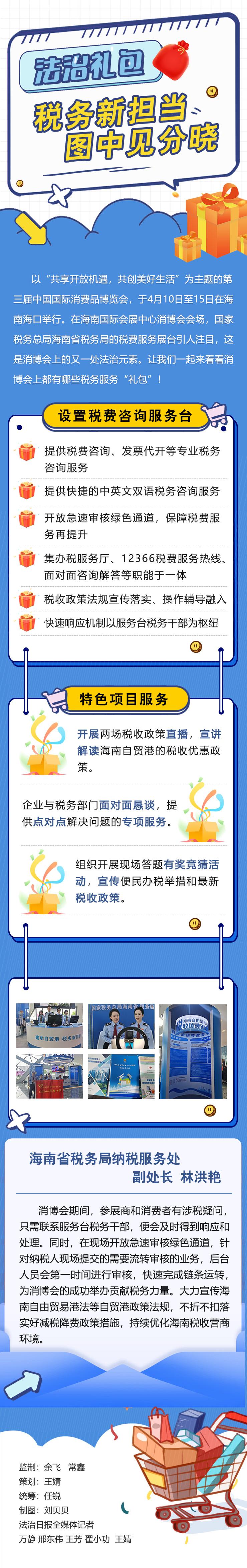 以“共享開放機(jī)遇,共創(chuàng)美好生活”為主題的第三屆中國國際消費(fèi)品博覽會,于4月10日至15日在海南??谂e行。進(jìn)入會場海南國際會展中心登錄大廳,國家稅務(wù)總局海南省稅務(wù)局的稅費(fèi)服務(wù)展臺引人注目,這是消博會上的又一處法治元素。讓我們一起來看看消博會上都有哪些稅務(wù)服務(wù)“禮包”!