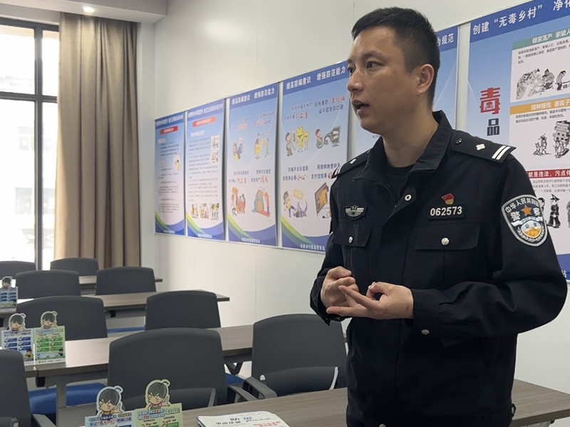 小南海派出所所長(zhǎng)童俊來(lái)介紹宣教中心功能 徐媛/攝