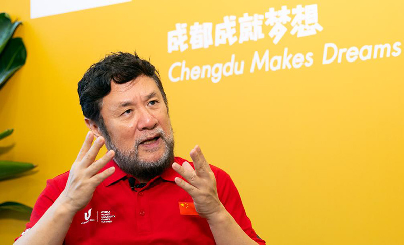 這是7月13日拍攝的成都第31屆世界大學(xué)生夏季運(yùn)動會開幕式總導(dǎo)演陳維亞在接受采訪。 新華社記者 沈伯韓 攝