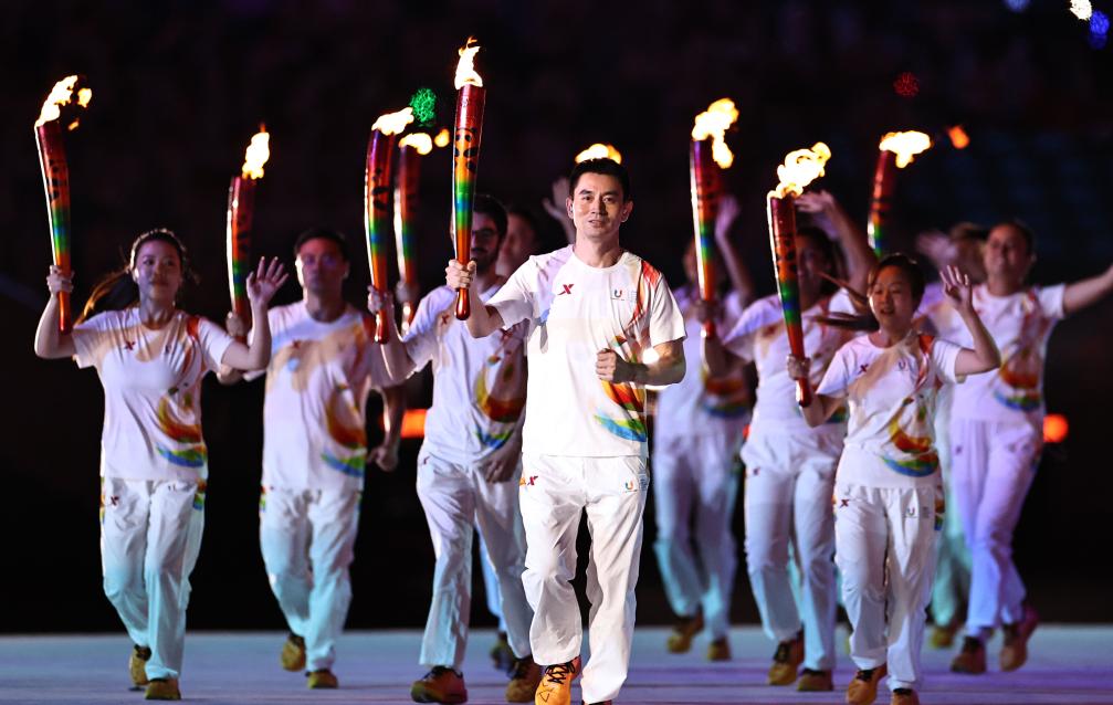 國際綜合性體育賽事開幕式的最大懸念往往就是主火炬的點(diǎn)燃方式。當(dāng)晚,在萬眾期待中,成都大運(yùn)會開幕式的點(diǎn)火儀式開始了。