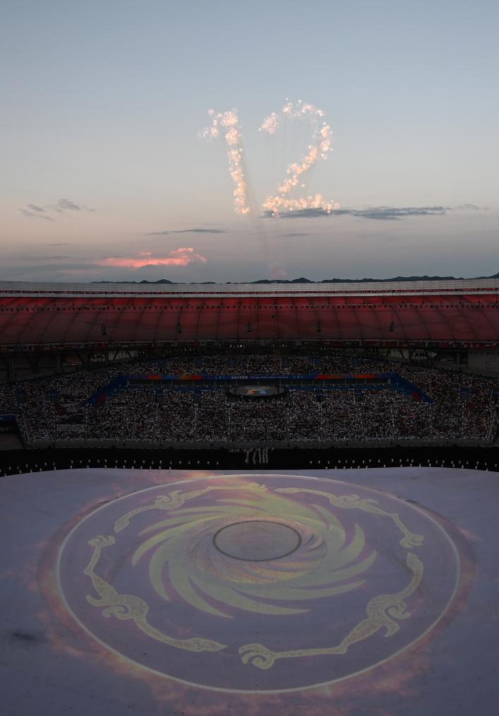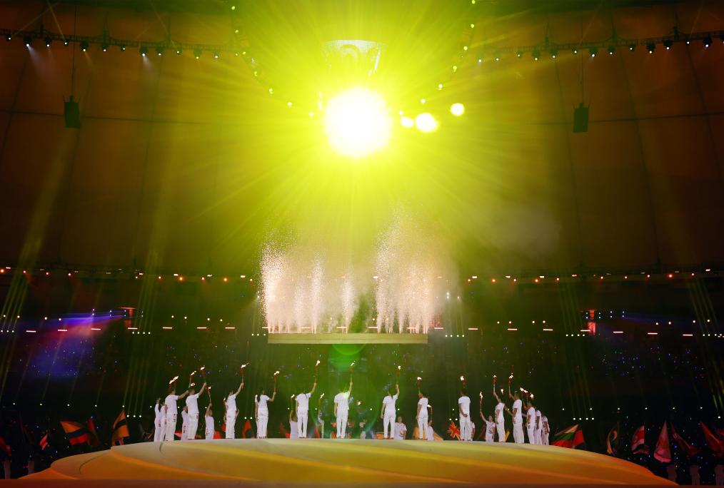 隨著大運(yùn)會(huì)主火炬塔被點(diǎn)燃,整個(gè)開幕式被推向高潮。
